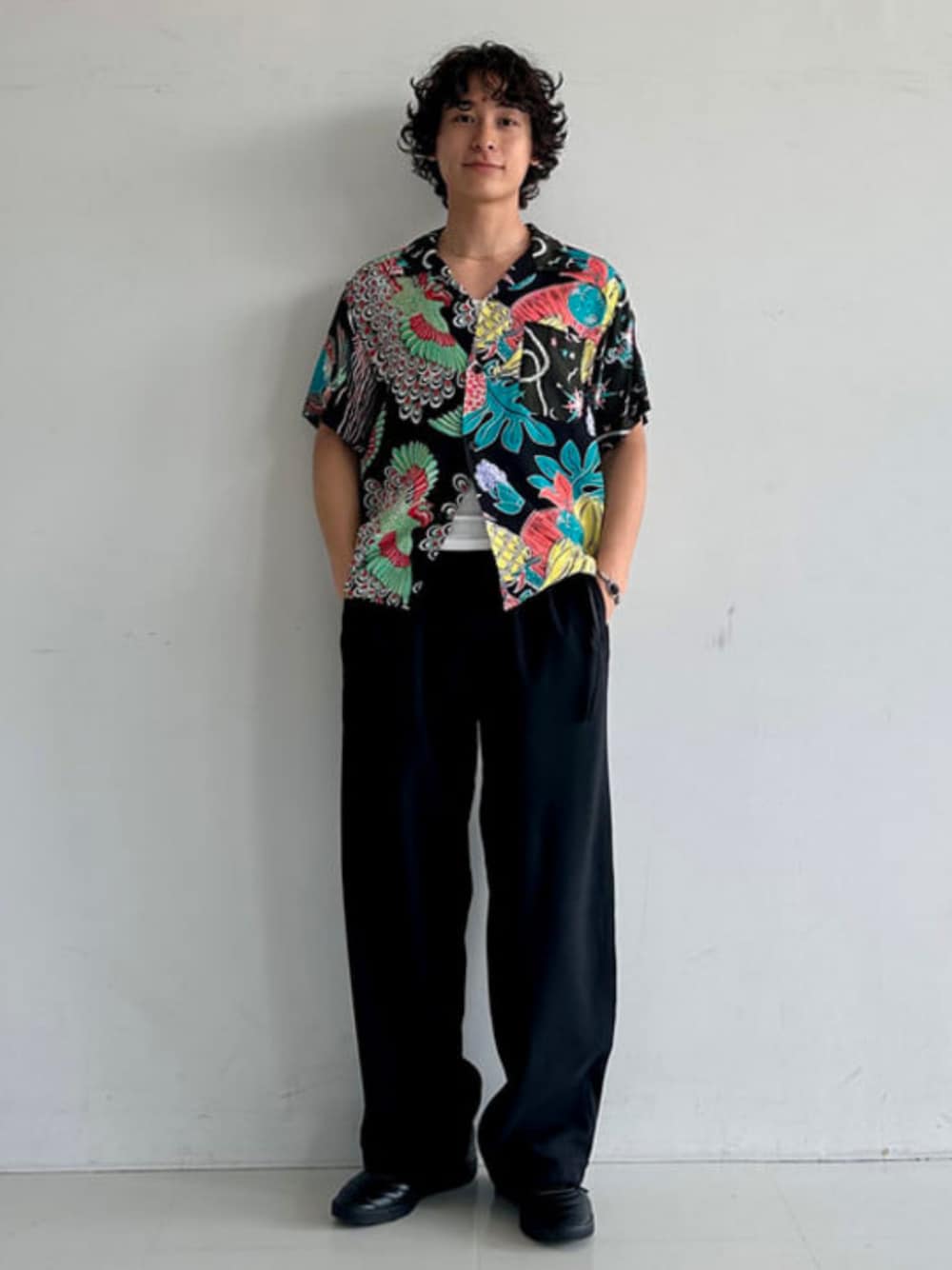 【夏先取りスタイル】気温も上がり暖かい日が続いてきましたね。ここまで来たら夏までなあっという間ですよー。クレイジーパターンのアロハシャツにシルエットが最高な【Gramicci】別注ワイドスラックスで一味違う夏モード。サイズはトップスMパンツLです!パンツはかなり太いですが、付属のベルトで難なく着用可。 BEAMS / Kelly