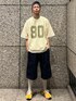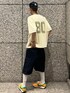 今回は相当気に入ってる色合わせです。 メッシュ地は、生地感固めのややパリッとした風合いで、リラックスシルエットを固定してくれます。配色も◎です。 中に着ている黄色いTシャツは、大きめの作りで色味もアクセントとして使えます。 パンツは、別注のものになっておりましてナウいシルエットに、大量のポケットという機能性も完備しているサイコーのショーツです。BEAMS / 宮越 拓斗