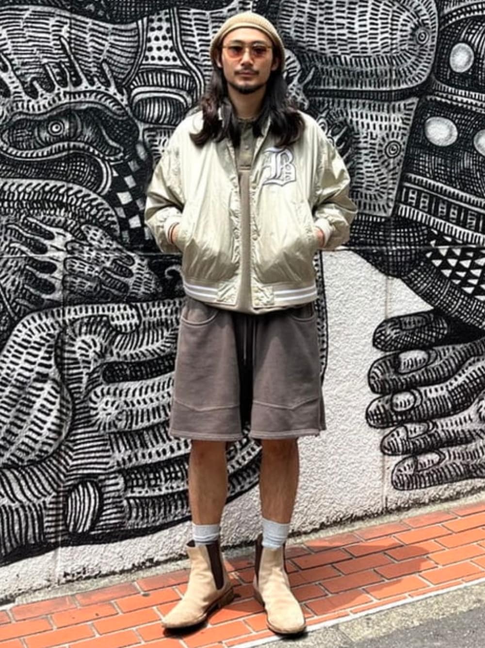 〈BEAMS〉サテンブルゾン 身長177cm, Mサイズ着用。 ジャストなサイズ感。他アイテムとも馴染みやすいカラーリングで、春夏でも気にせず羽織れる生地の厚みが特徴的です。 BEAMS / 竹中 千満
