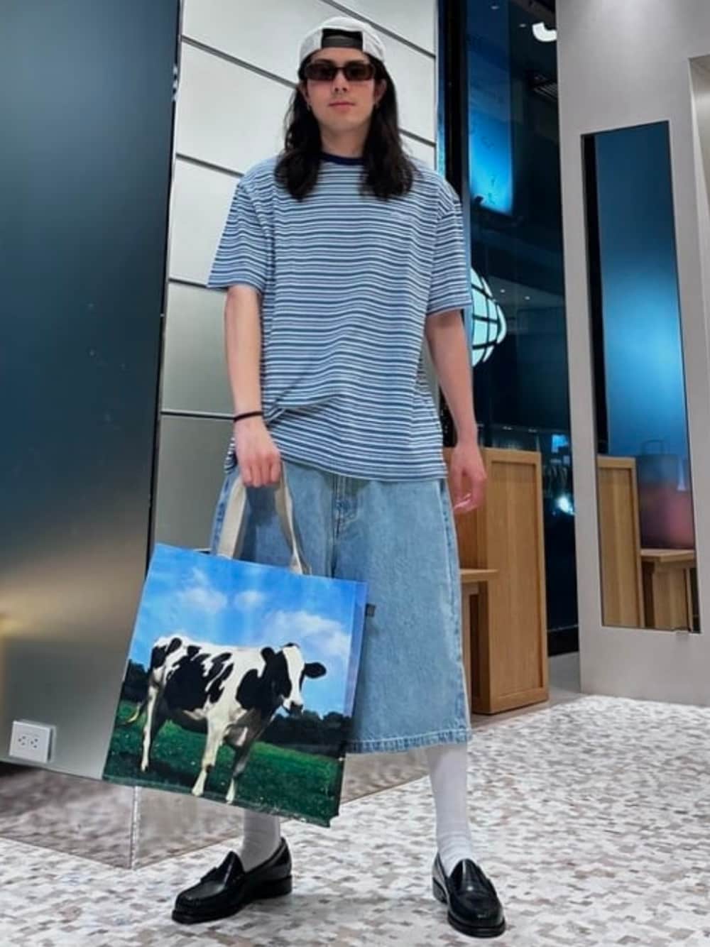 【身長172㎝・トップスL・パンツL】 パンツ《【別注】MOUNTAIN HARDWEAR / DENIM SHORTS》をメインに同系色のトップスで合わせました。物足りずバックをアクセントにしました。ビームス 新潟 /三村 明弘
