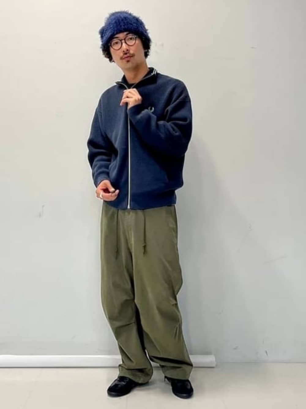 【今年は挑戦したいサラッと着こなし】〈FRED PERRY(フレッドペリー)〉のドライバーズニットをメインにコーディネート。アイテムの雰囲気に合わせて少し落ち着いたコーディネートを組みたかったので、やや微起毛のミリタリーパンツで品のある感じをプラスしました!インナーには遊び心のあるTシャツで自分らしさもプラス!僕は185cm75kgです! BEAMS / BAKU(東江 漠)