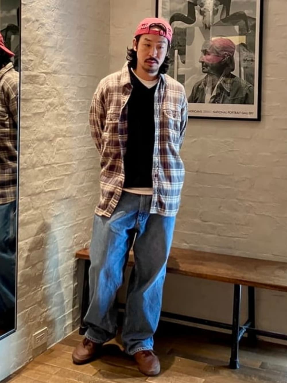 色落ち加減がいいネルシャツを土臭くアメカジでコーディネート。ネルシャツはリメイクするのも良さそう。 ビームス 銀座 / 冷水 友紀
