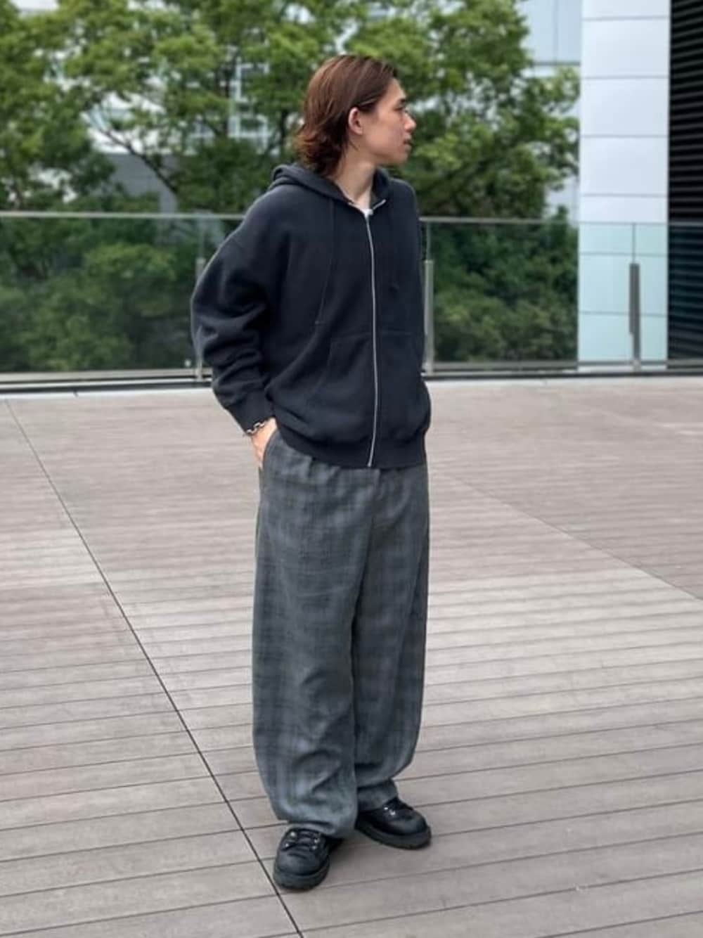 BEAMS(BEAMS MEN)のその他パンツ「ワイドテーパード ブークレ チェック イージーパンツ」を使ったコーディネート