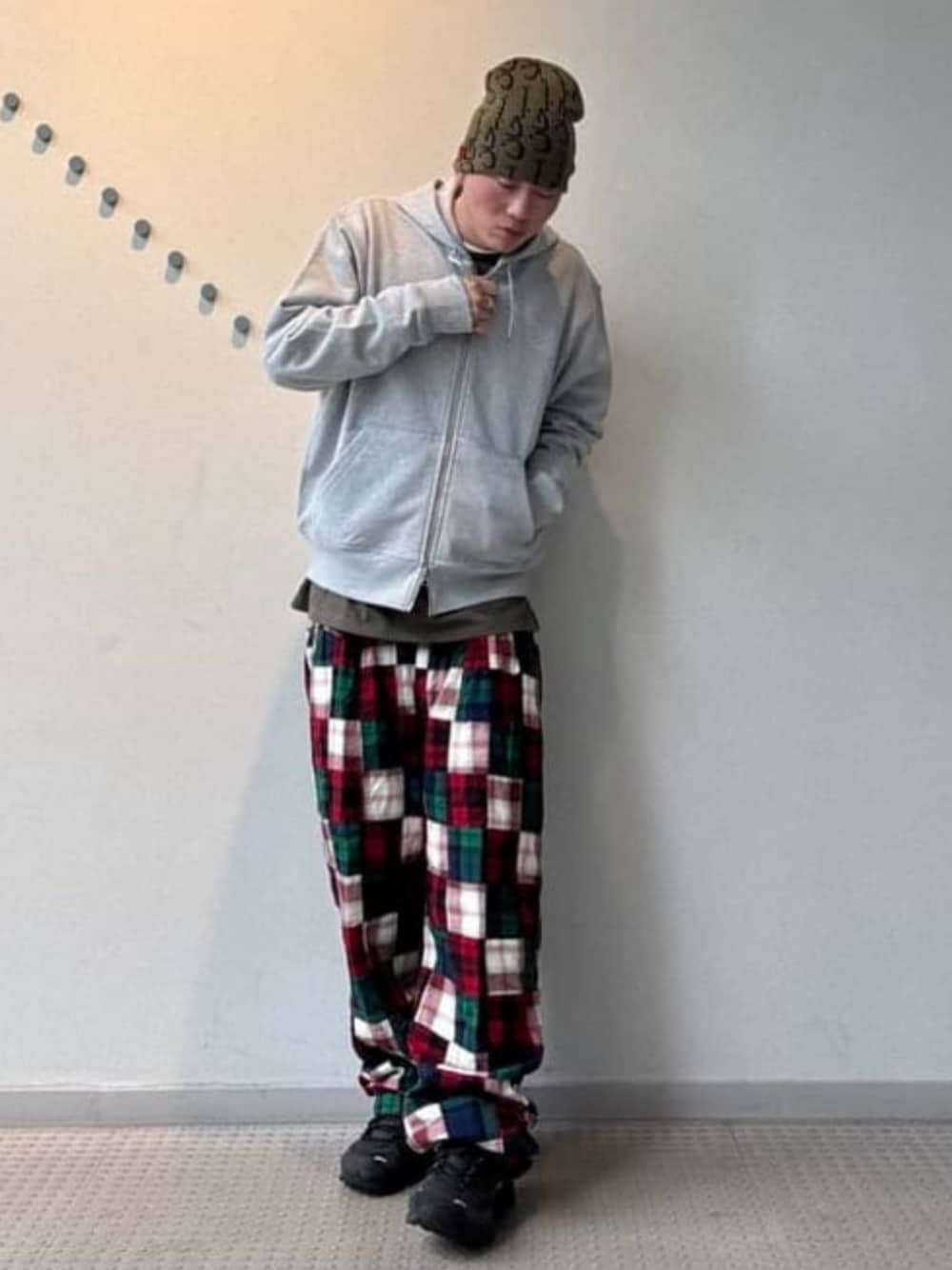 LACOSTEの別注ジップフーディーを使ってスタイリングです。フード部分と胸にロゴがあり、シンプルながらラコステらしさもしっかりあります。着丈短めで着やすいです!パンツはパッチワークパンツを合わせました。シンプルなトップスによく合います。 ビームス 名古屋 / 細野