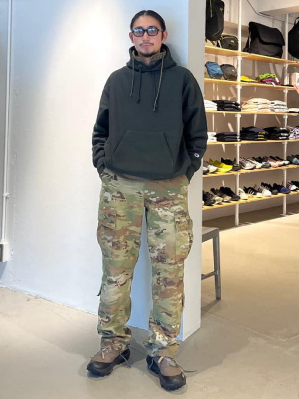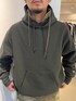 【別注】〈Champion〉 × 〈MIN-NANO〉スウェット フーディー 身長177cm, Lサイズ着用 オーバーなサイズ感ではありますが、首周りはやや小さめ?に感じます。 個人的にはゆったり着ることをお勧めします。 BEAMS / 竹中 千満