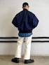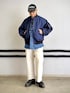 "ザ"なアメカジスタイル。カラーリングをネイビーとホワイトでまとめてみました。定番人気のCrazy MA-1はボリュームわ、出したかったのでワンサイズ大きめで着用しています。 BEAMS MEN 渋谷 / 林 義人