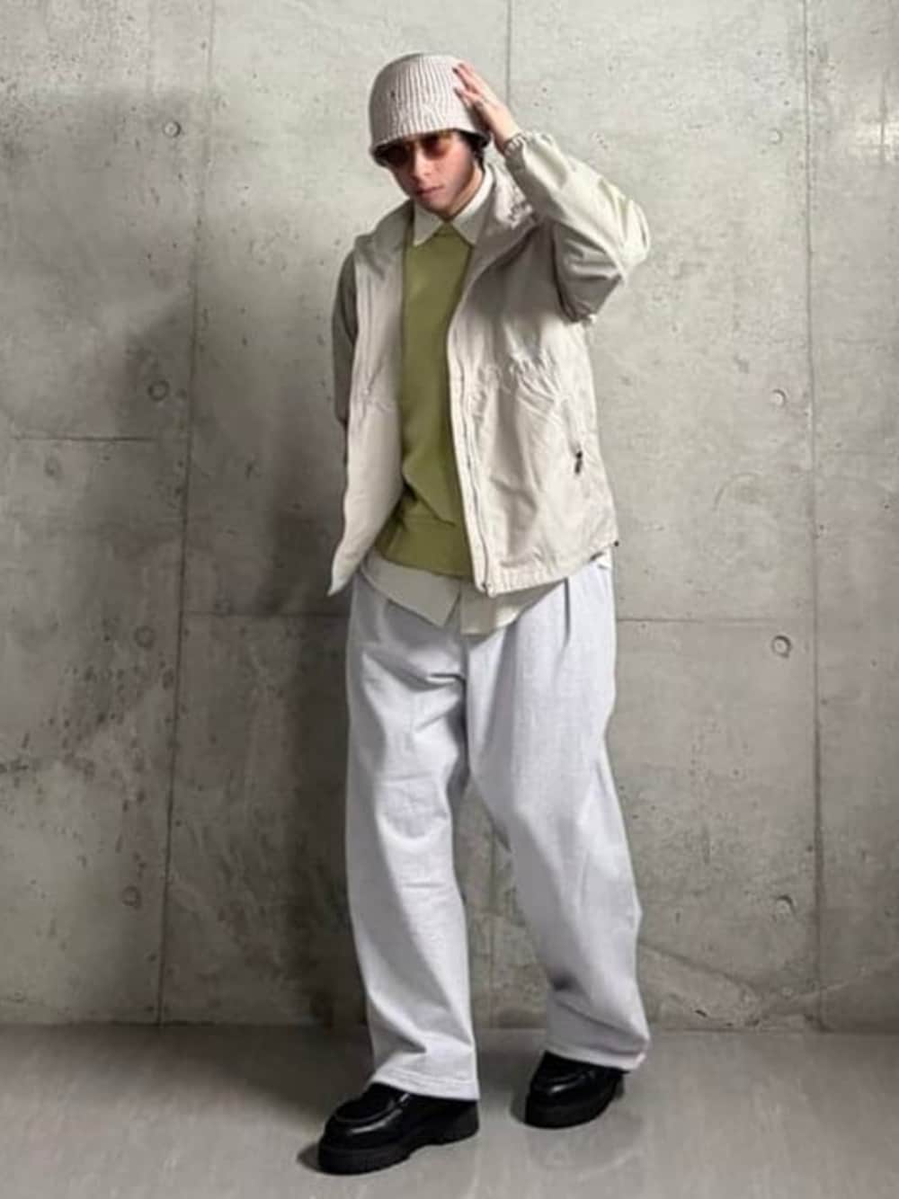 【ワントーンスタイルでリラックスな日常を】 ペールなワントーンで全体をまとめて、インナーには春らしいスウェット。ナチュラルなカラーリングで落ち着きます。 [トップス] 絶妙な色味のTHE NORTH FACEのジャケットは軽いナイロンの質感で、薄手の春仕様です。(174.M着用)6枚目だけ裾のドローコードを絞って着用してみました。状況に応じて使い分けられる嬉しいギミックです! [インナー①]素敵なイエローのスウェットはブラック含めて2色展開(174.M着用)素材の切り替えがおもしろく、身幅にゆとりがあるので重ね着もしやすかったです。[インナー②] 目玉商品の1つ、新作のDANTONの別注シャツ。今回はベージュのストライプを着用。他2色はベーシックなホワイトとサックスカラーです!(174.M着用)必ず1着はもっておきたい!そんなシャツです。キレイめでもカジュアルでも幅広く活躍できます。 ビームス みなとみらい / 沼崎翔空