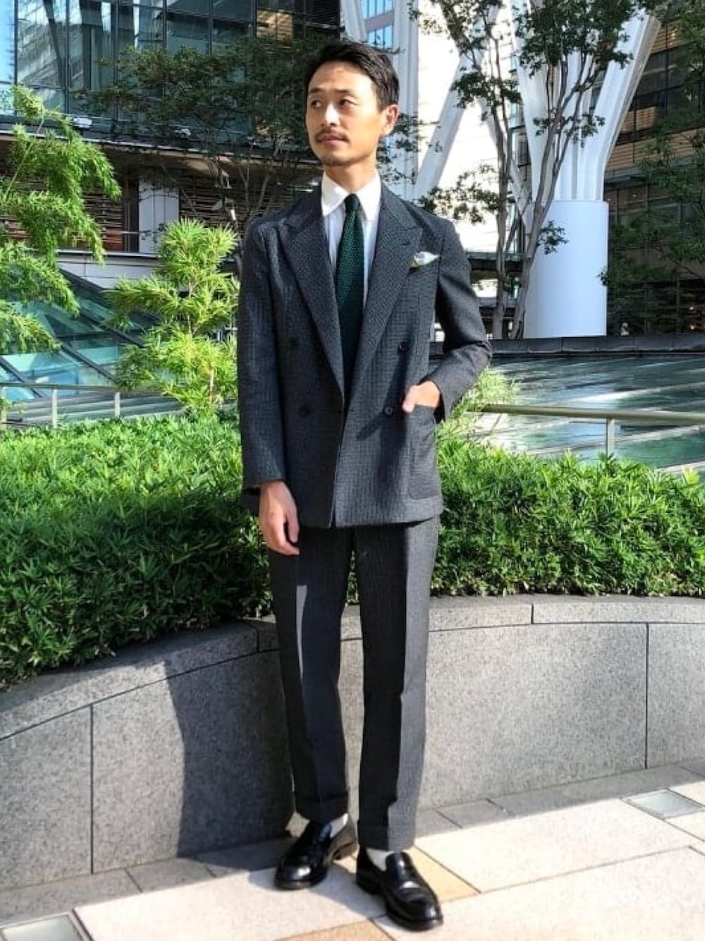 作りの軽い<CARUSO>の人気モデル『Butterfly』。 生地は硬く重く、長く着られそうです。 ブルーとネイビーとグレーが混じるミニチェック柄でクラシックとモダンが共存する雰囲気が魅力的です。