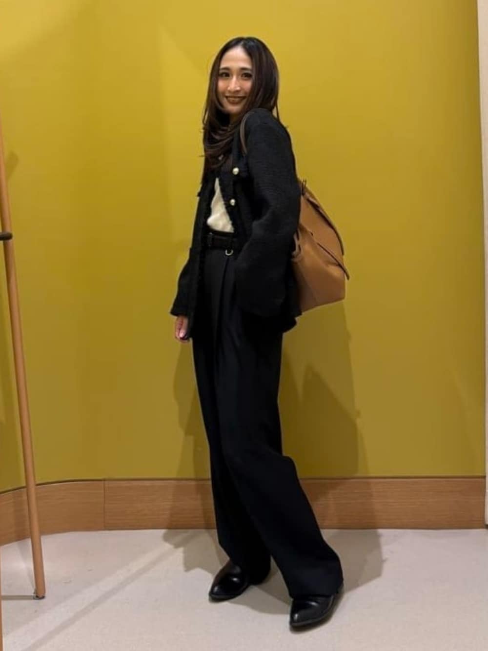 \上品さとこなれ感、どっちも欲しい日に。/ 表情のあるブラックのツイードジャケットは、 シンプルなスタイリングに羽織るだけで一気に華やぐ主役アイテム* ゴールドボタンがアクセントになり、 ブラックでも重たく見えないのがポイントです。 インナーにはやさしいオフホワイトを合わせて、 顔まわりと全体にほどよい明るさと抜け感をプラス! きちんと感はありつつ、かたくなりすぎないバランスに仕上げました♡ ボトムはストンと落ちるワイドスラックスで、 縦ラインをきれいに見せてくれる美シルエット。 体のラインを拾いにくく、デイリーにも取り入れやすい一本です。 ウエストはベルトで引き締めて、 全体をすっきり大人バランスに◎ きれいめスタイルながら、 お仕事・お食事・お出かけはもちろん、 ちょっとした行事やセレモニーシーンにも対応できる万能コーデになってます♪ 『 羽織るだけでサマになるツイードジャケット』 『 着回し力抜群のオフホワイトニット』 『 美ラインが叶うワイドスラックス』 オンもオフも活躍する、 頼れる「きちんと見えスタイル」ぜひ参考にしてみてください! 是非フォローとお気に入りお待ちしてますッッ!