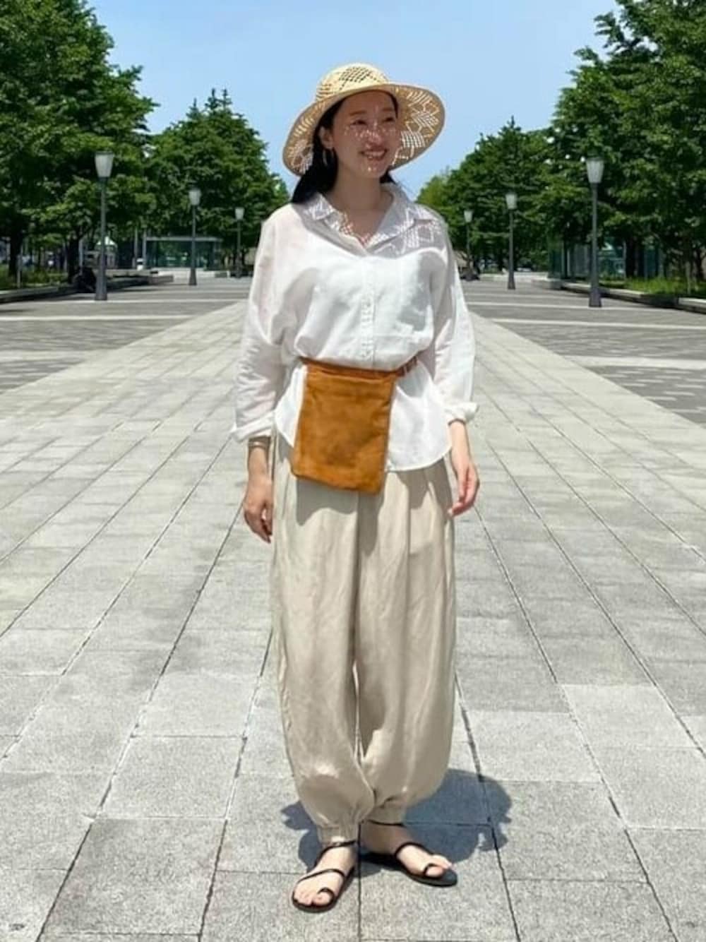 【大人のワントーンコーデ】 カシュクールのようなデザインにもなる2WAYシャツは、軽い着心地と透け感のあるコットン素材で真夏にも大活躍の予感..!淡いカラーのワントーンコーデだったのでお気に入りの〈SEA〉のウエストバッグをアクセントにしました。 ビームス 新丸の内 / Misaki Kubota