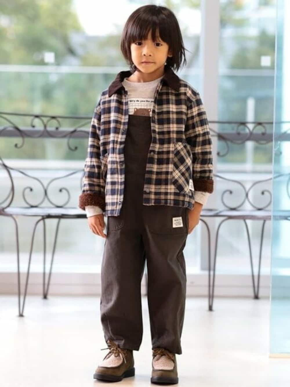 BEAMS mini(BEAMS HEART)のブルゾン「裏ボア チェック カバーオール 2024FW(90~150cm)」を使ったコーディネート