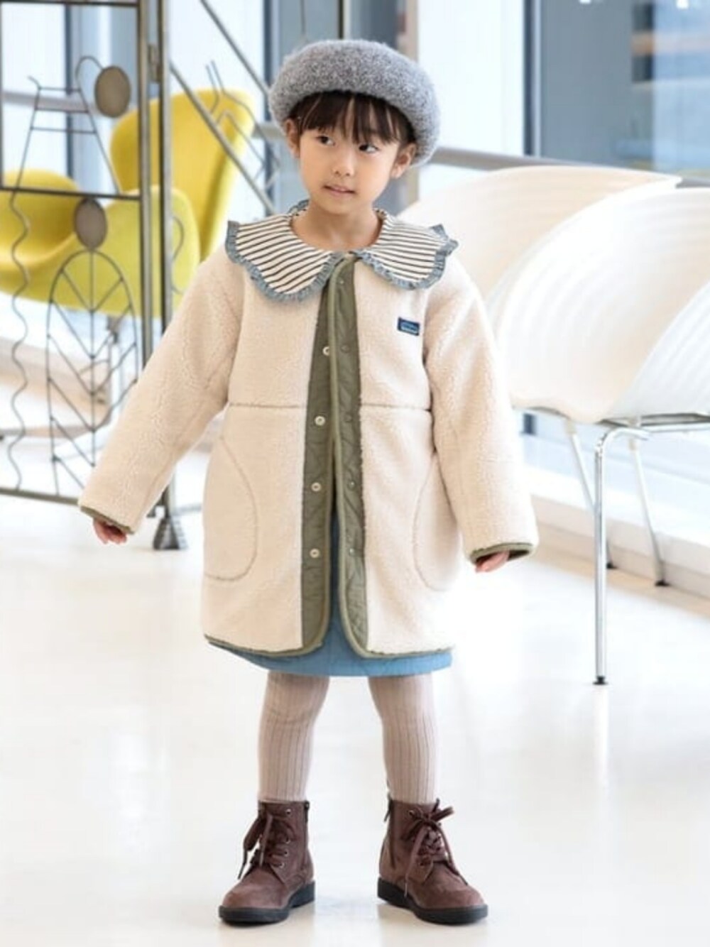 BEAMS mini(BEAMS HEART)のノーカラーコート「ボアキルト リバーシブル ノーカラーコート 2024FW(90~150cm)」を使ったコーディネート
