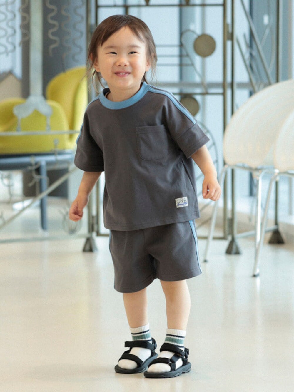 BEAMS mini(BEAMS HEART)のTシャツ/カットソー「バイカラー ライン 天竺 セットアップ 2025SS(90~150cm)」を使ったコーディネート