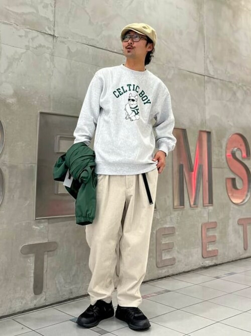 BEAMS T(BEAMS MEN)のスウェット「fLAnsisCA / Print Crewneck Sweat 23AW」を使ったコーディネート