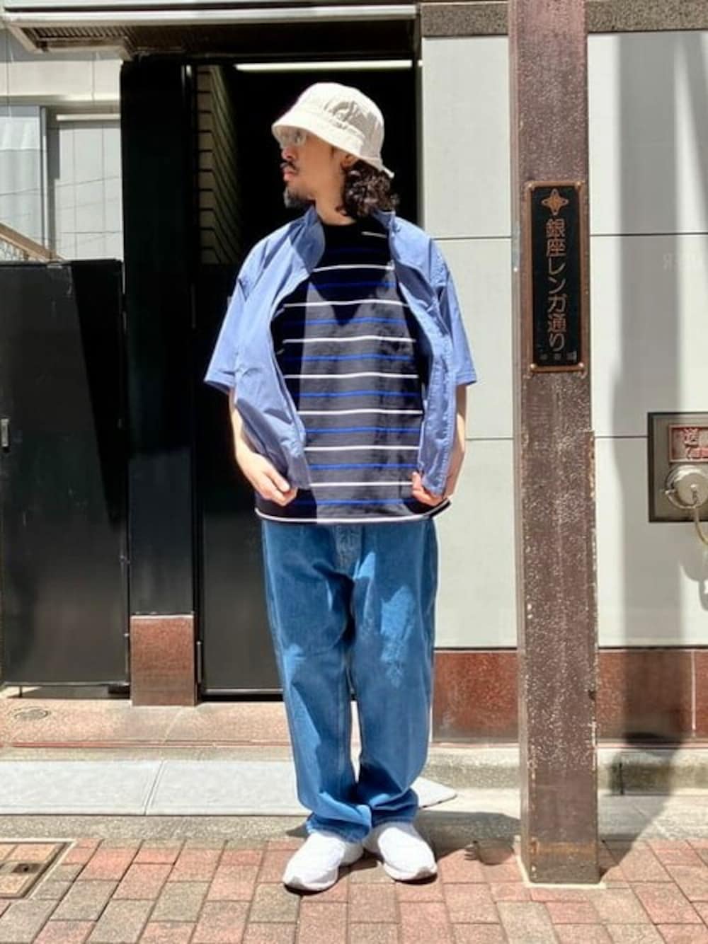 ブルーベースのカラーでまとめ、所々ホワイトを効かせた至ってシンプルなコーディネート。今日も快適に過ごせます。 BEAMS 銀座 / 冷水 友紀