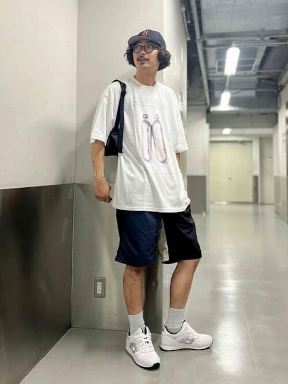 『バランス大事』〈GRAMICCI〉のショーツは膝上丈なので、子供っぽくなり過ぎないようにトップスにはオーバーサイズのTeeシャツを合わせました!そして、アクセサリーも充実させることで完璧なスタイリングに仕上げました!僕は185cm75kgです! BEAMS ストリート梅田 / BAKU(東江 漠)