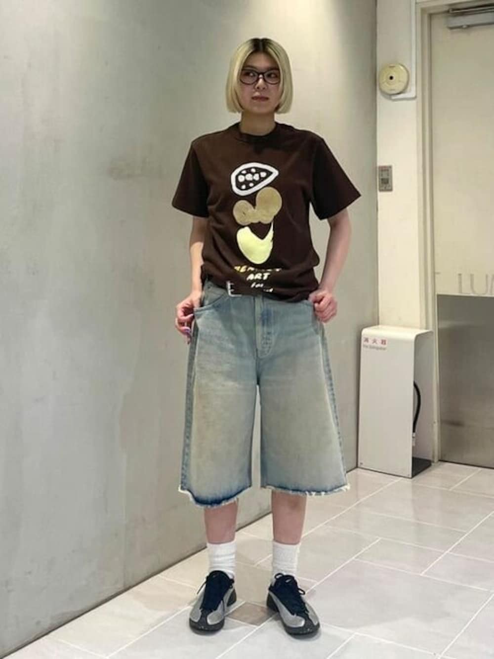 〈Mayumi Yamase〉 ×〈BEAMS T〉 162㎝でXSを着用しています◎ デニムは絶妙な色味とカットオフ仕様が可愛い☆☆レディースの方にもオススメです!! BEAMS 新宿 / りり
