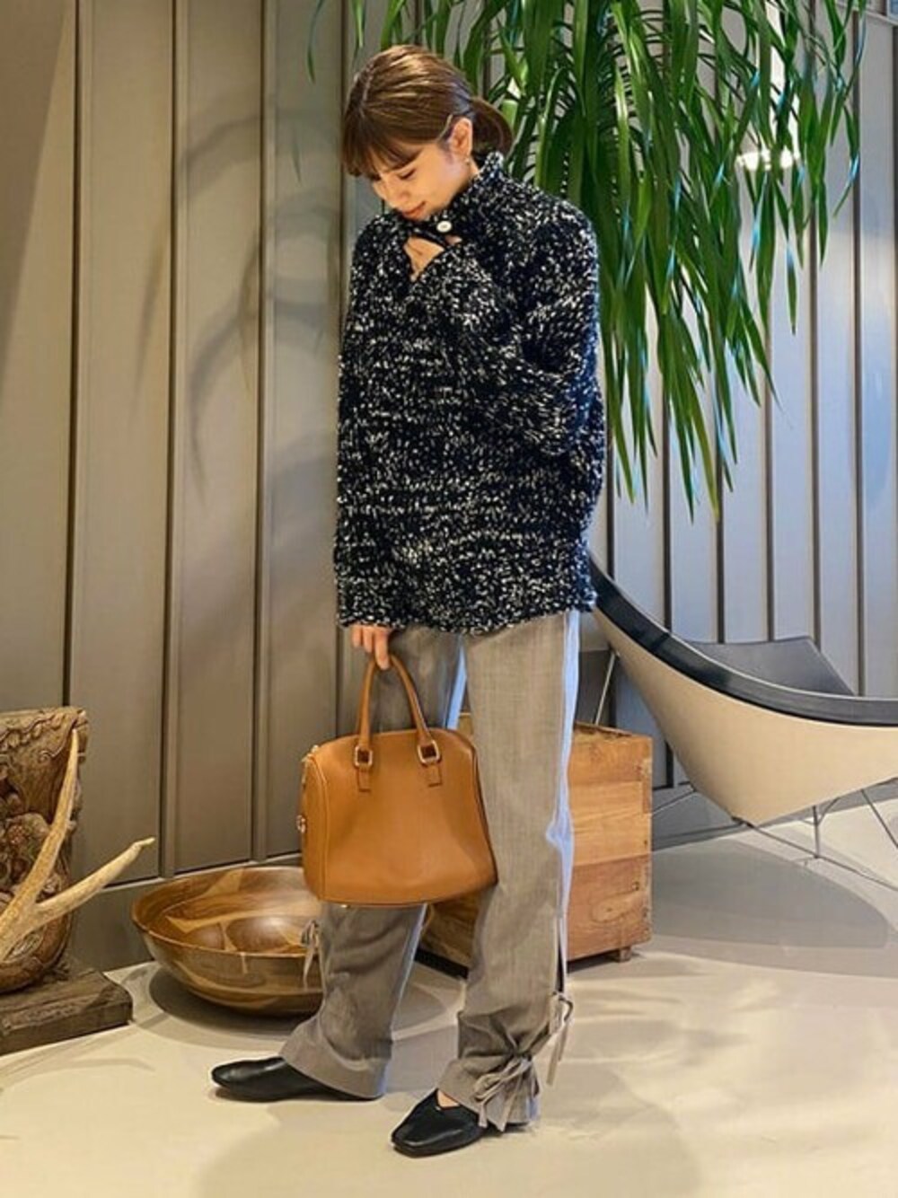 こんにちは! 大人気のニット!今季は明るいカラーをよく見ますが、定番のブラックはやっぱり裏切らないです。。ほっこりとしながらもどこかモードな印象。11月中ならこれ1枚でも十分乗り切れます。