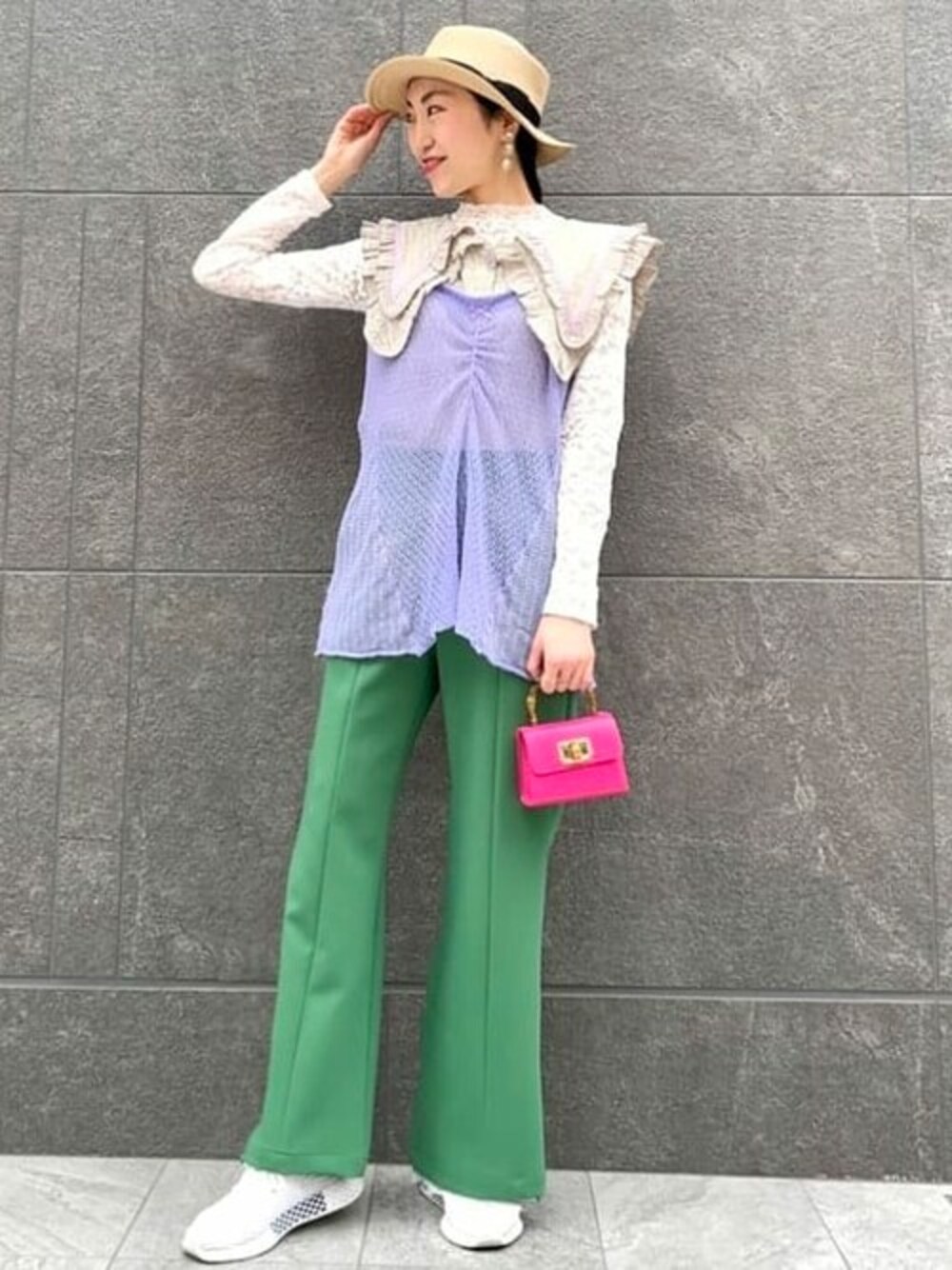 【カラフル★】最近購入したBeAMS DOTのブラウスをメインにスタイリング!とことんカラフルなスタイリングにしたかったので、キャミソール、ボトムス、バッグ、全て鮮やかなアイテムを合わせました◎ ビームス 神戸 / SAKIKO