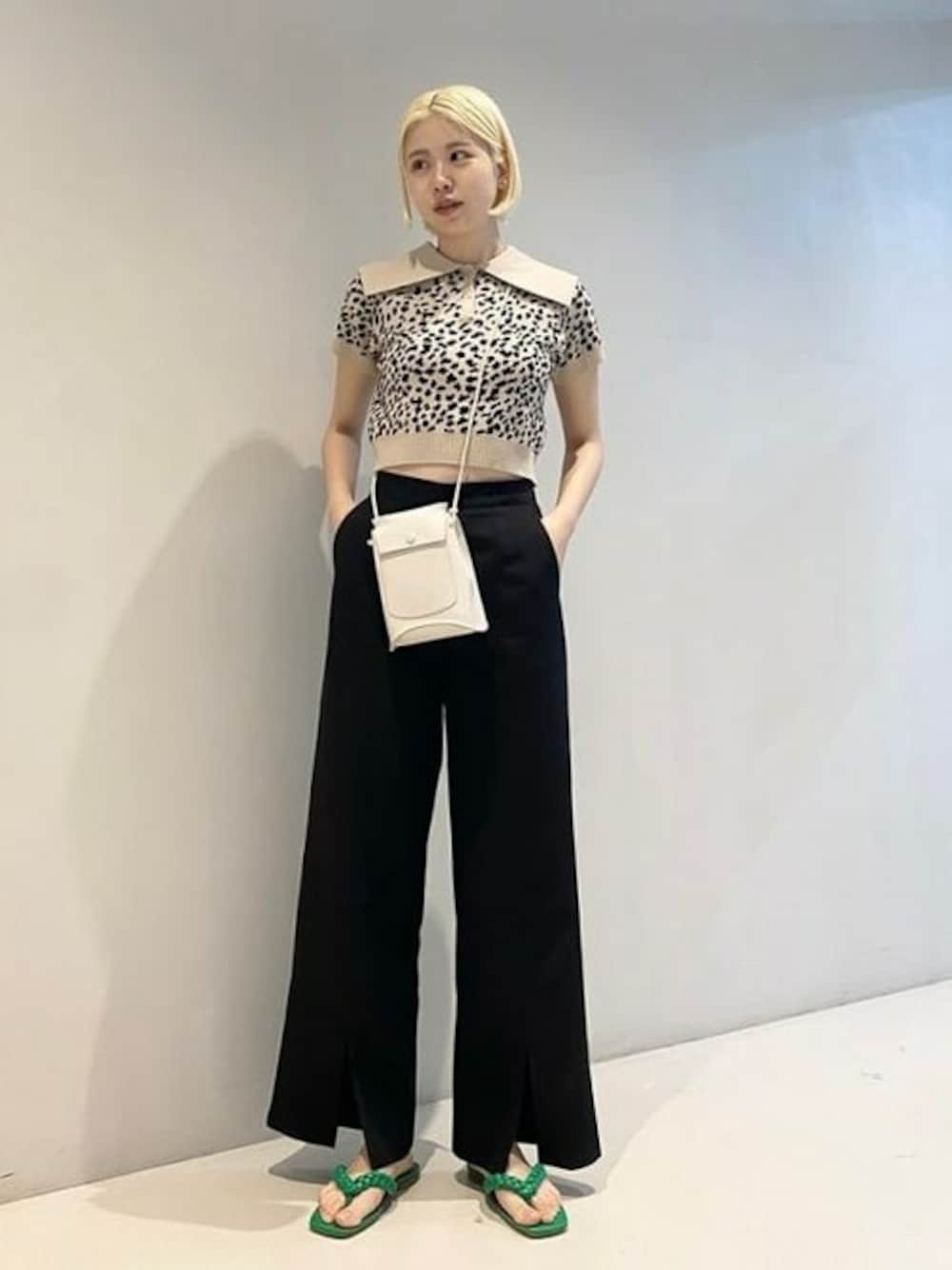 【絶対的スタイルアップ】<BeAMS DOT>のニットポロは短丈でお腹がチラリと見える長さ!ハイウェストパンツでお腹をカバーしつつスタイルアップが叶う○ ビームス 池袋 / ハルヒ