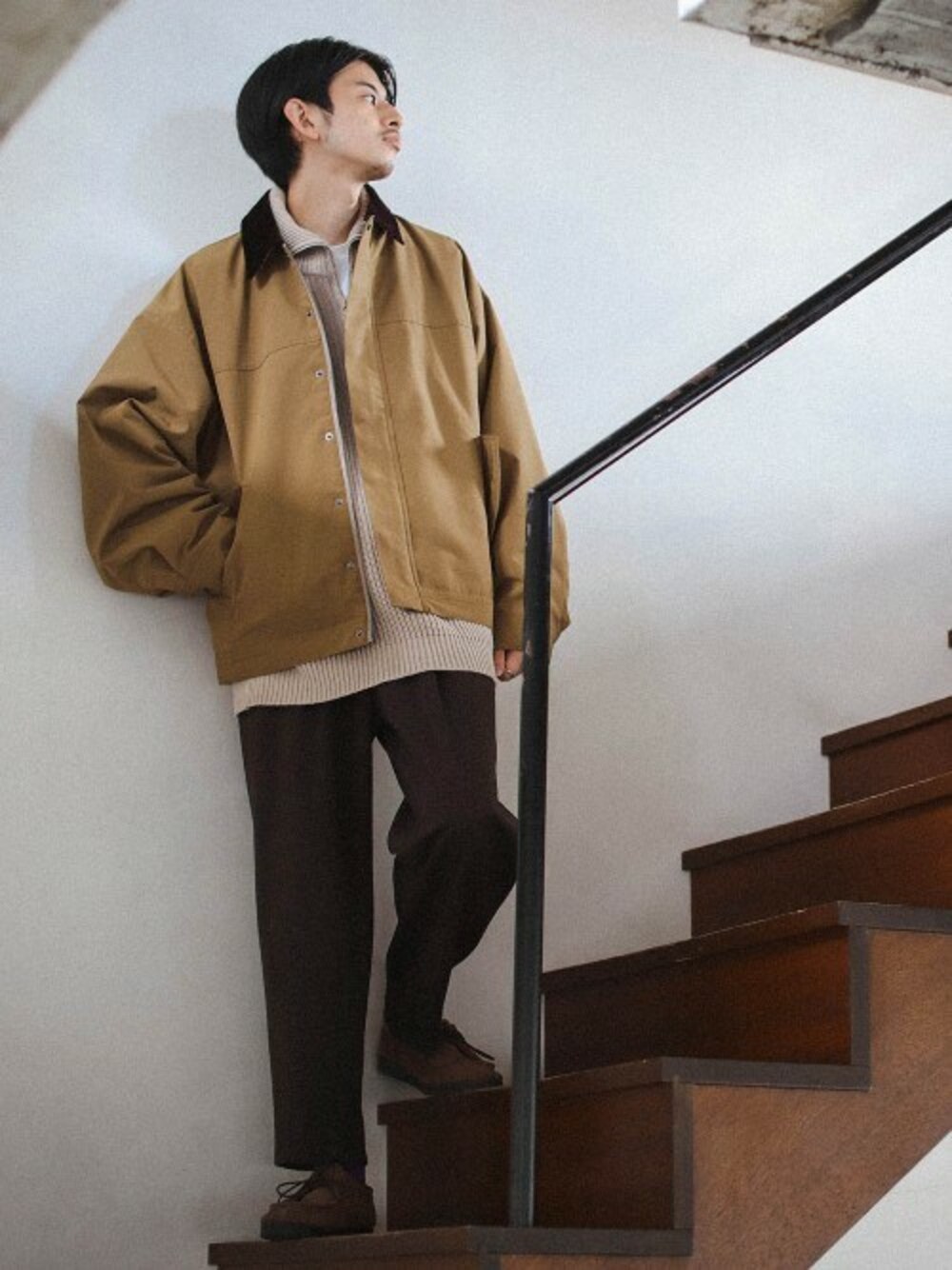 ブラウン系でワントーンコーディネート。 秋口にはショート丈のブルゾンでのレイヤードがおすすめです。 BeAMS DOT / Naoki Syuzui