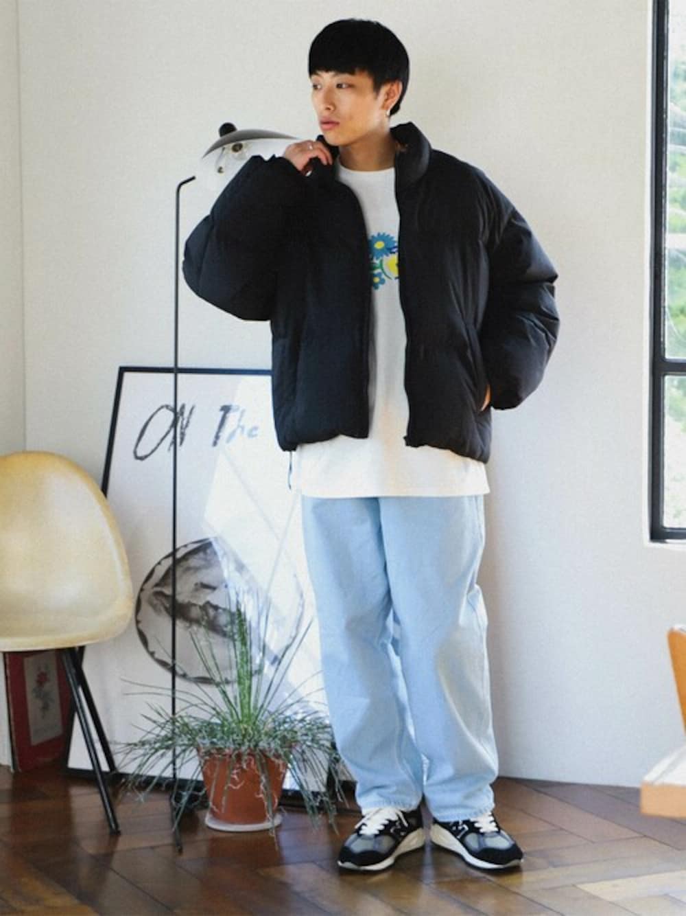 秋冬でも重たくならないようにインナーのプリントとデニムの色合わせを意識しました。 BeAMS DOT / たなか