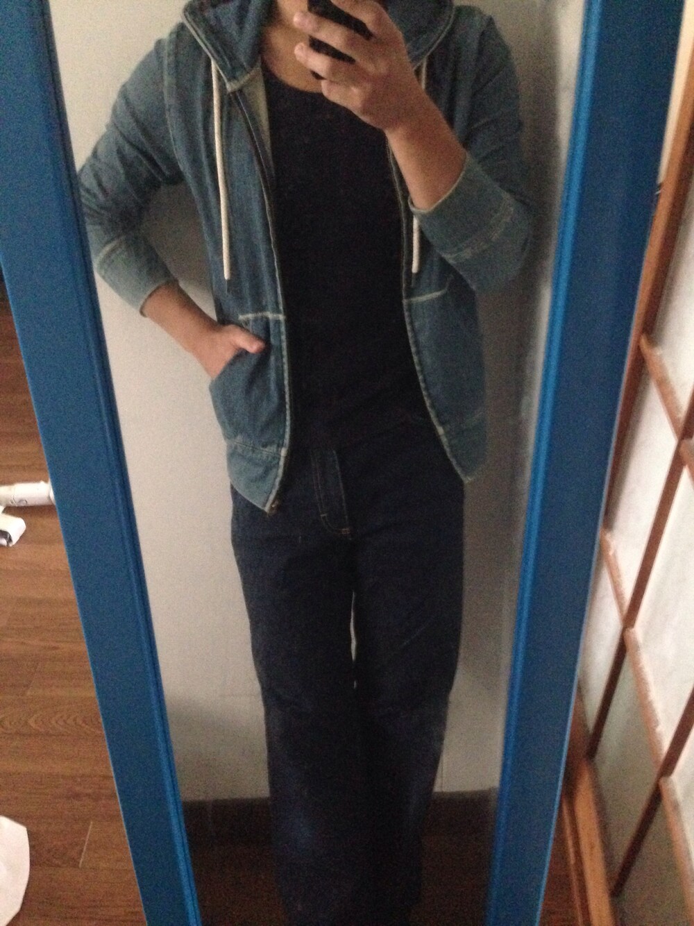 パーカーでもデニムオンデニム! 本日のデニムパンツは三大有名デニムのひとつ、Lee!最大の特徴は織り方が左綾織なところ。これによりソフトでフラットな色落ちが可能なのだぁー!!!いや、意味わからん。