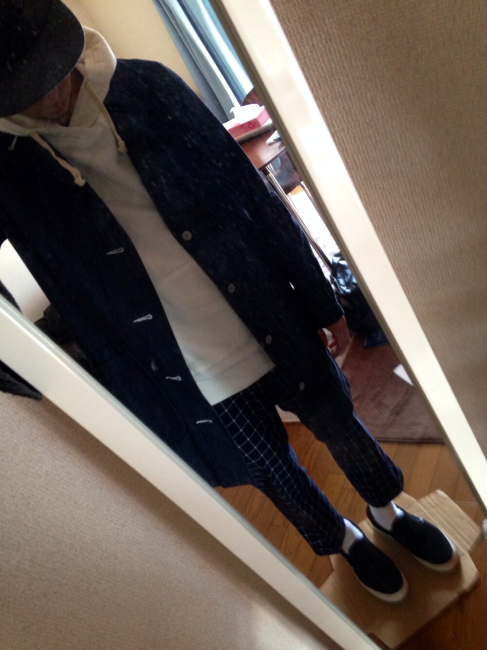 ポテチのステンカラーコート「デニムコート」を使ったコーディネート