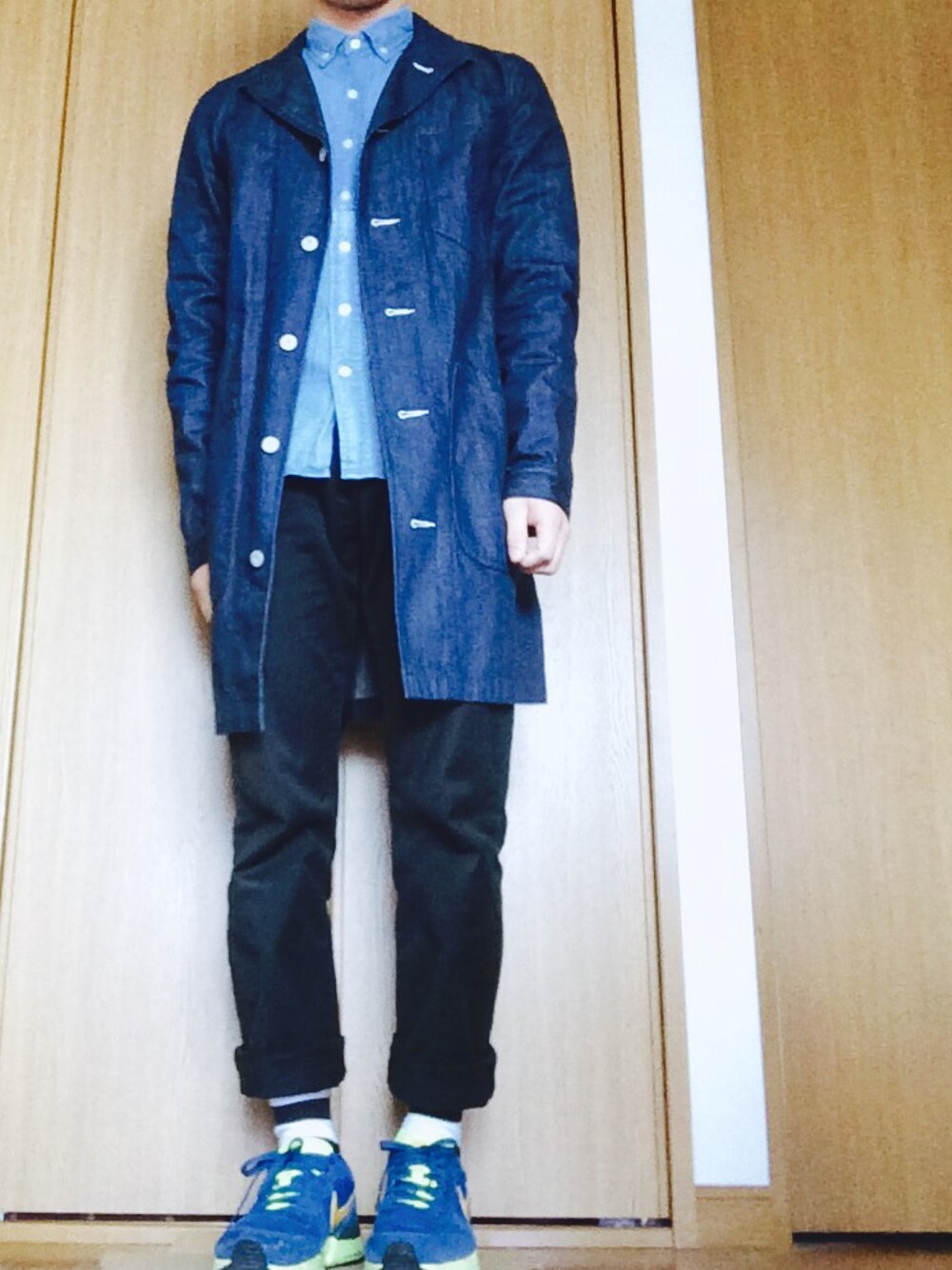 ポテチのステンカラーコート「デニムコート」を使ったコーディネート