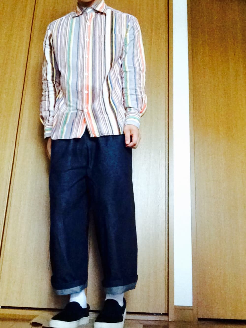 ポテチのシャツ/ブラウス「ストライプ柄長袖シャツ」を使ったコーディネート