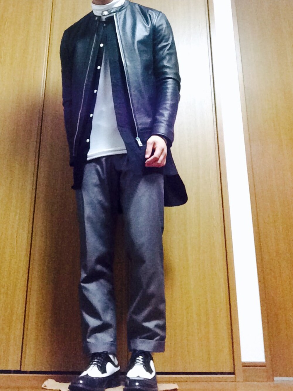 ポテチのライダースジャケット「ラムレザーライダースジャケット/553112」を使ったコーディネート
