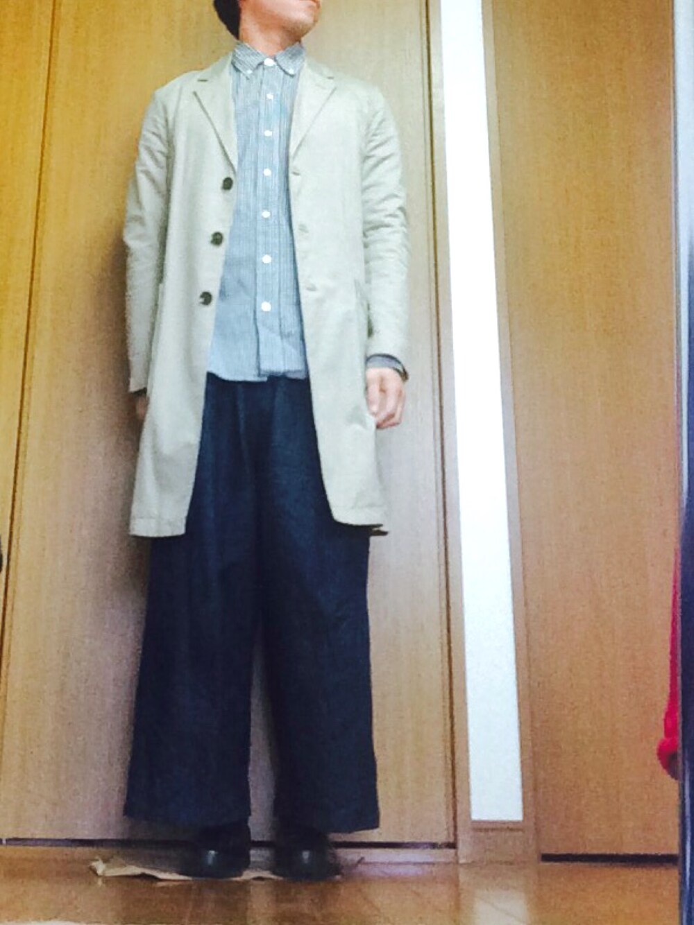 ポテチのステンカラーコート「ライトチェスターコート【HARE】」を使ったコーディネート