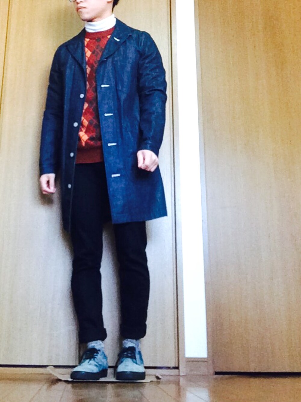 ポテチのステンカラーコート「デニムコート」を使ったコーディネート