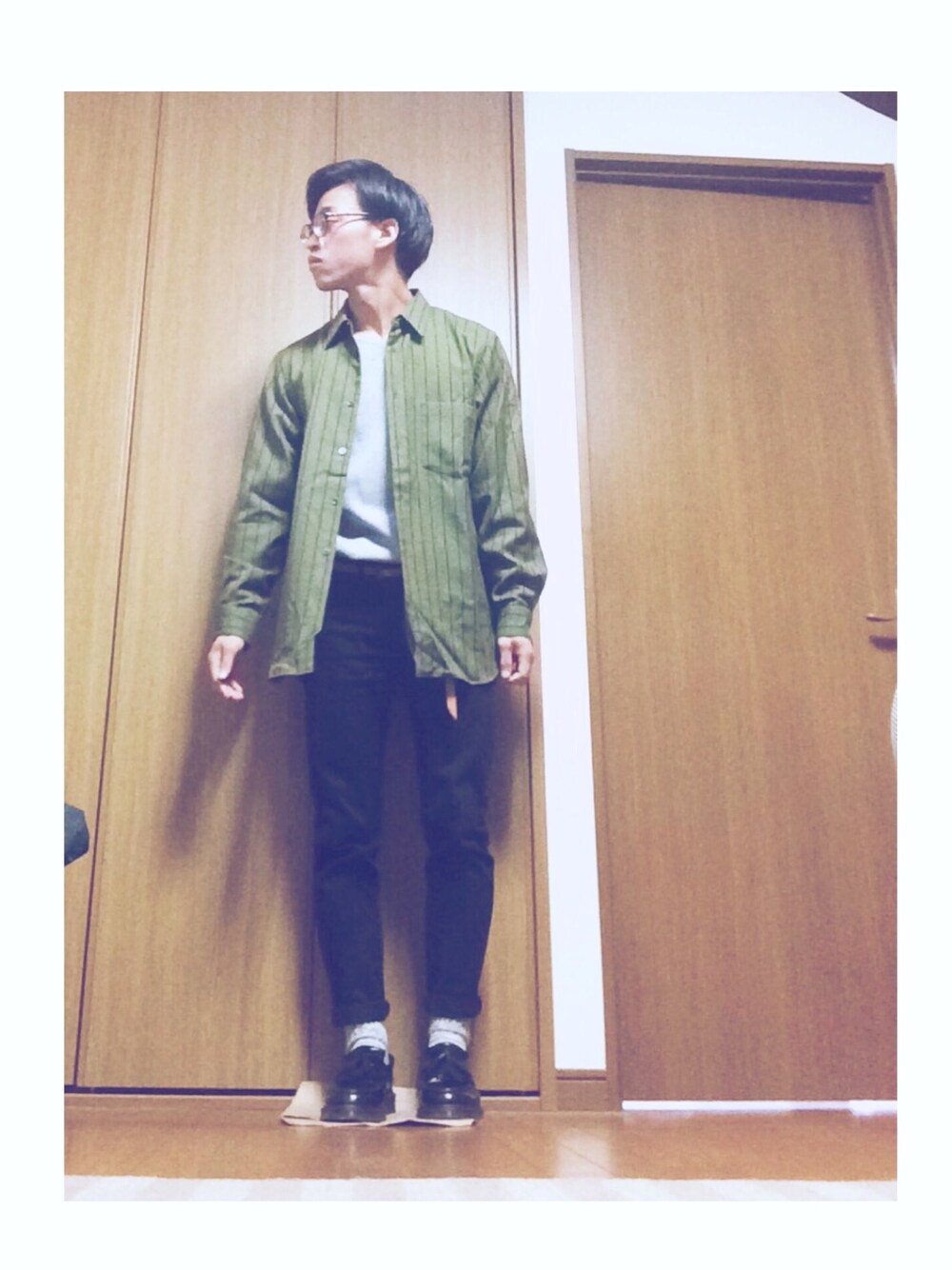 ポテチのシャツ/ブラウス「ストライプ柄ウール長袖シャツ」を使ったコーディネート