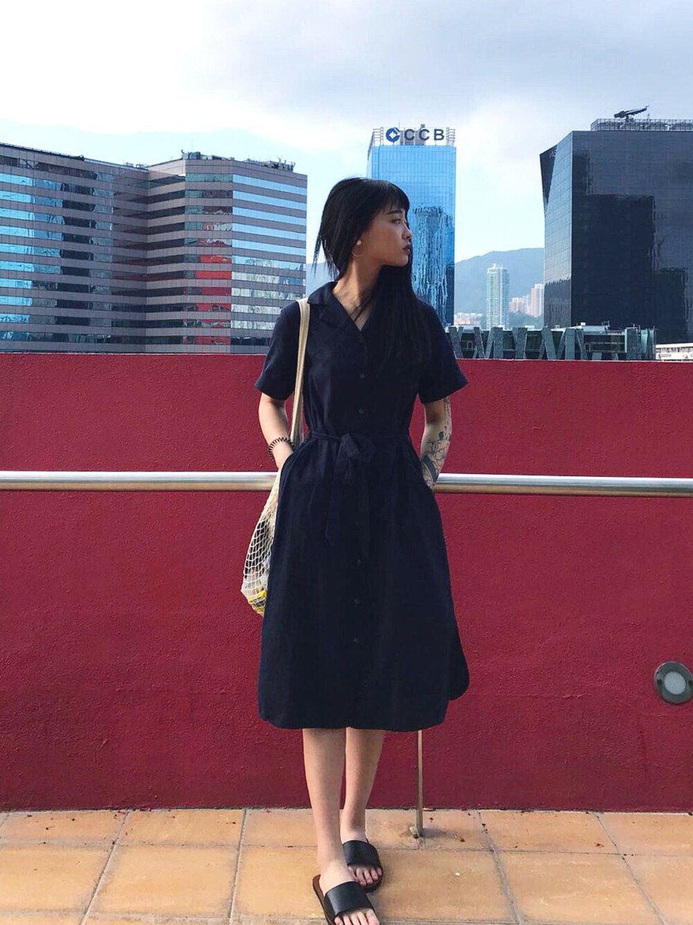 ブルー系のワンピース/ドレスを着用したレディースの夏コーディネートの1枚目の写真