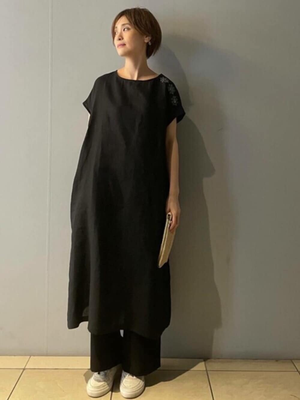 【ワンピース】Fサイズ 麻100%のワンピース。 肩ののボタンがアクセントに。 スッキリシルエットでポケットがあるデザイン。 •透け感:気になりません •裏地:なし •洗濯:ドライクリーニング 【パンツ】0サイズ 細身ではなくあえて落ち感のあるナゴミパンツと合わせて 【バッグ】サンアルシデ ¥9,900 staff height 158cm https://wear.jp/naturo/ @naturo