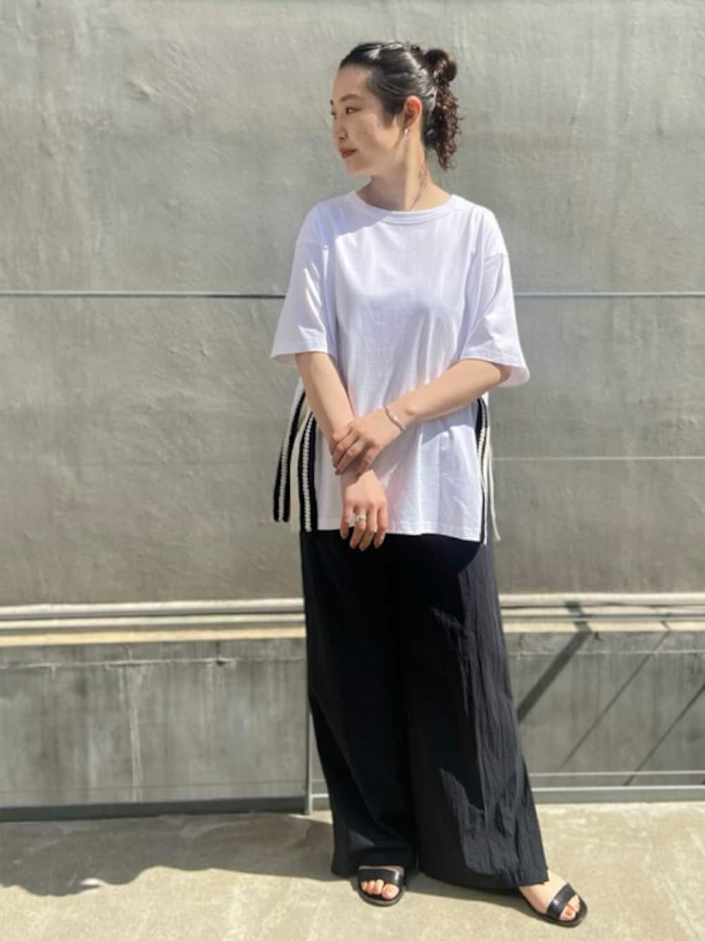 ランキング上位アイテムコーディネート(5月26日付) かぎ針サイドスリットT ¥24,200税込 【スタッフレビュー】 夏が恋しくなるコーディネート。 全体的にモノトーンでまとめ、夏でも暑苦しくないようにしました。 【tops】着用サイズ:F シンプルなカットソーのサイドに大きなスリットを入れ、 かぎ針で編んだモチーフを施したトップス。 他にないビアズリーらしいカットソーなので、暑い夏も楽しめます。 袖丈は、肘くらいまであるので、一枚でも安心です。 伸縮性:あり 透け感:インナーを着たら気にならない 裏地 :なし 光沢感:なし