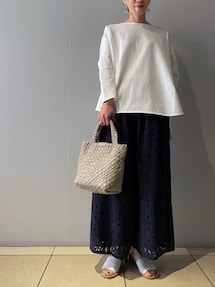 【tops】着用サイズ:F リネン素材で涼しく着れるサマーニット。 冷房が苦手な方や日焼けが気になる方には特におすすめです。 洗濯 :手洗い可 伸縮性:あり 透け感:あり 裏地 :なし 光沢感:なし 【bottom】着用サイズ:1 すっぽりとゆったり着れるスカート。 程よい長さでサイズ展開も有りますので選びやすくなっています。 洗濯 :手洗い可 伸縮性:なし 透け感:なし 裏地 :なし 【shoes】着用サイズ:38size(24.5~25cm)