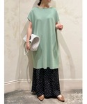 【tops】着用サイズ:F シンプルで馴染みのいいカラーが着やすいチュニックワンピース。涼しげなグリーンが見た目にも涼しく感じられそうです。 洗濯 :手洗い可 伸縮性:あり 透け感:なし 裏地 :なし 光沢感:なし 【bottom】着用サイズ:1 すっきりと履ける定番トラックパンツ。 軽い履き心地で夏も快適に過ごせそうです。 洗濯 :手洗い可 伸縮性:あり 透け感:なし 裏地 :白のみ有り 【shoes】着用サイズ:38size(24.5~25cm)