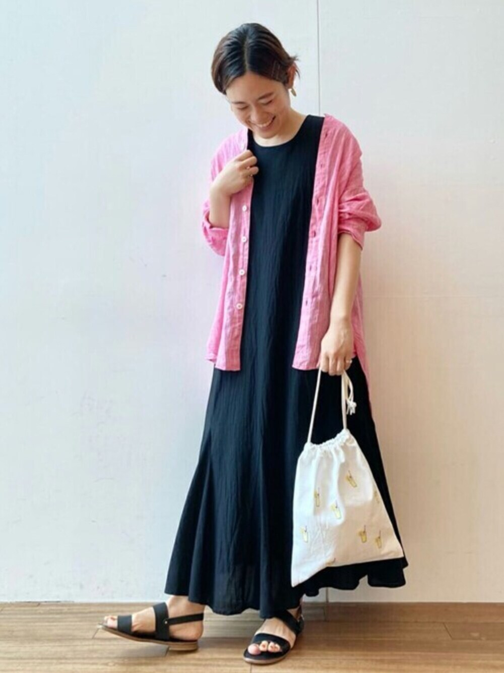 いつもご覧いただきありがとうございます。 【tops】着用サイズ:F 柔らかいリネン素材のシャツは羽織りでも活躍してくれる優秀アイテム。 三色展開ですが、どれも爽やかな綺麗なお色味です。 洗濯 :手洗い可 伸縮性:なし 透け感:なし 裏地 :なし 光沢感:なし 【one-piece】着用サイズ:F シンプルで綺麗めなシルエットのワンピース。 ほんのりマーメイドシルエットが女性らしい印象に。私もお気に入りのワンピースです。 洗濯 :手洗い可 伸縮性:なし 透け感:なし 裏地 :なし 【shoes】着用サイズ:38size(24.5~25cm) 【bag】 ビアズリー オリジナルの刺繍バッグ。 小さなレモネードやメロンソーダが可愛らしいです。