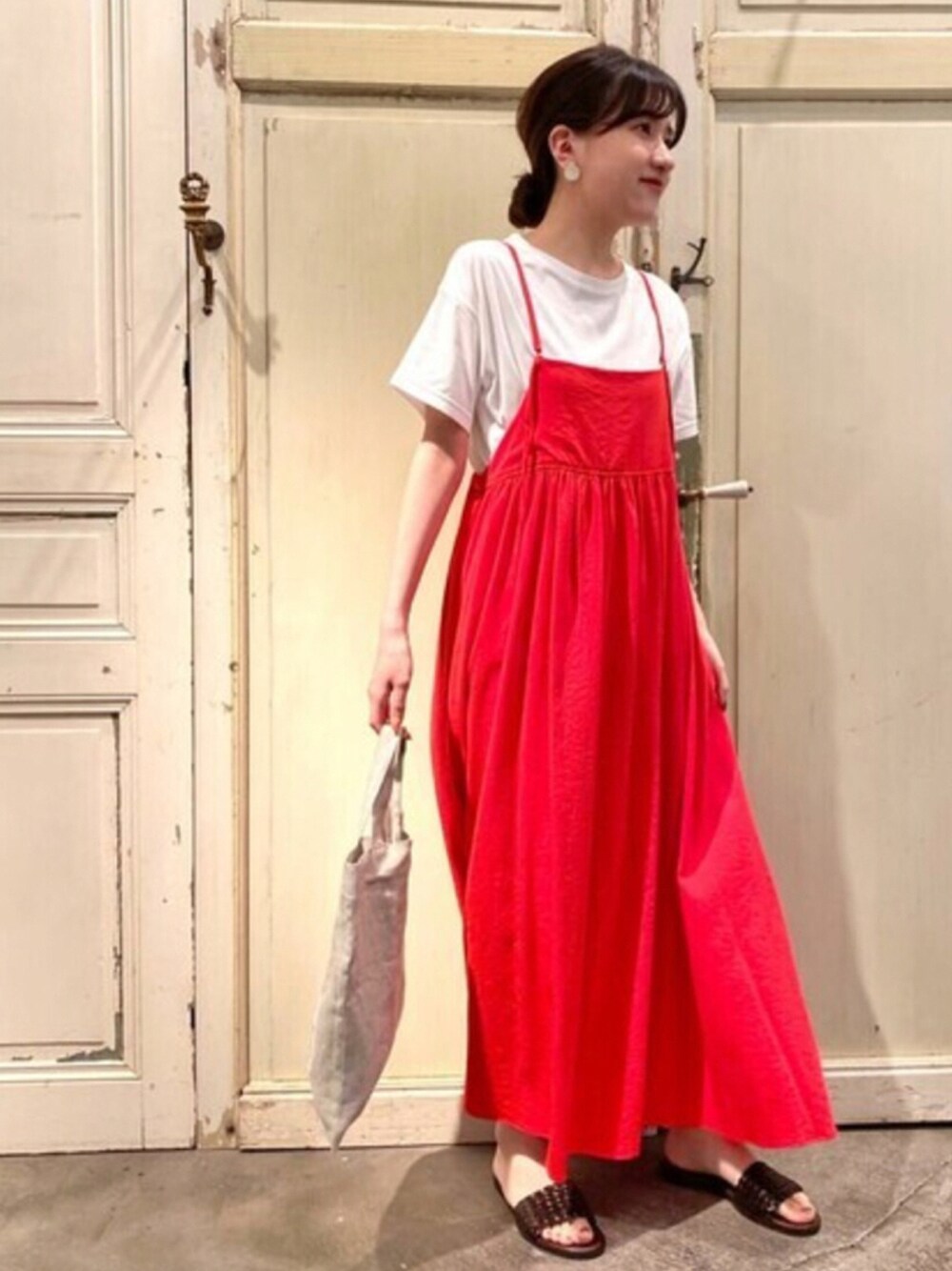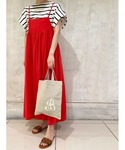 【tops】着用サイズ:F 後ろの右肩にイニシャルデザイン刺繍を施したTシャツ。 シンプルながらもコーディネートの ワンポイントになります。 何にでも合わせやすいので 一枚あるとこれからの季節重宝します。 洗濯 :手洗い可 透け感:インナーを入れると気にならない 伸縮性:あり 【one-piece】着用サイズ:F ぱっと目を惹く夏らしいお色のサロペットスカート。 広がり過ぎず綺麗なシルエットで着れます。 レーヨンとポリエステルの混紡で シワになりにくいのが嬉しいです。 丈は肩紐のアジャスターで調節できます。 洗濯 :手洗い可 透け感:なし 裏地 :なし 【bag】 Tシャツと同じ刺繍を施したリネン100%のバッグです。 A4ファイルが入る大きさで内ポケットも ついているので使い勝手が良いです。 【shoes】 dragon / ドラゴン