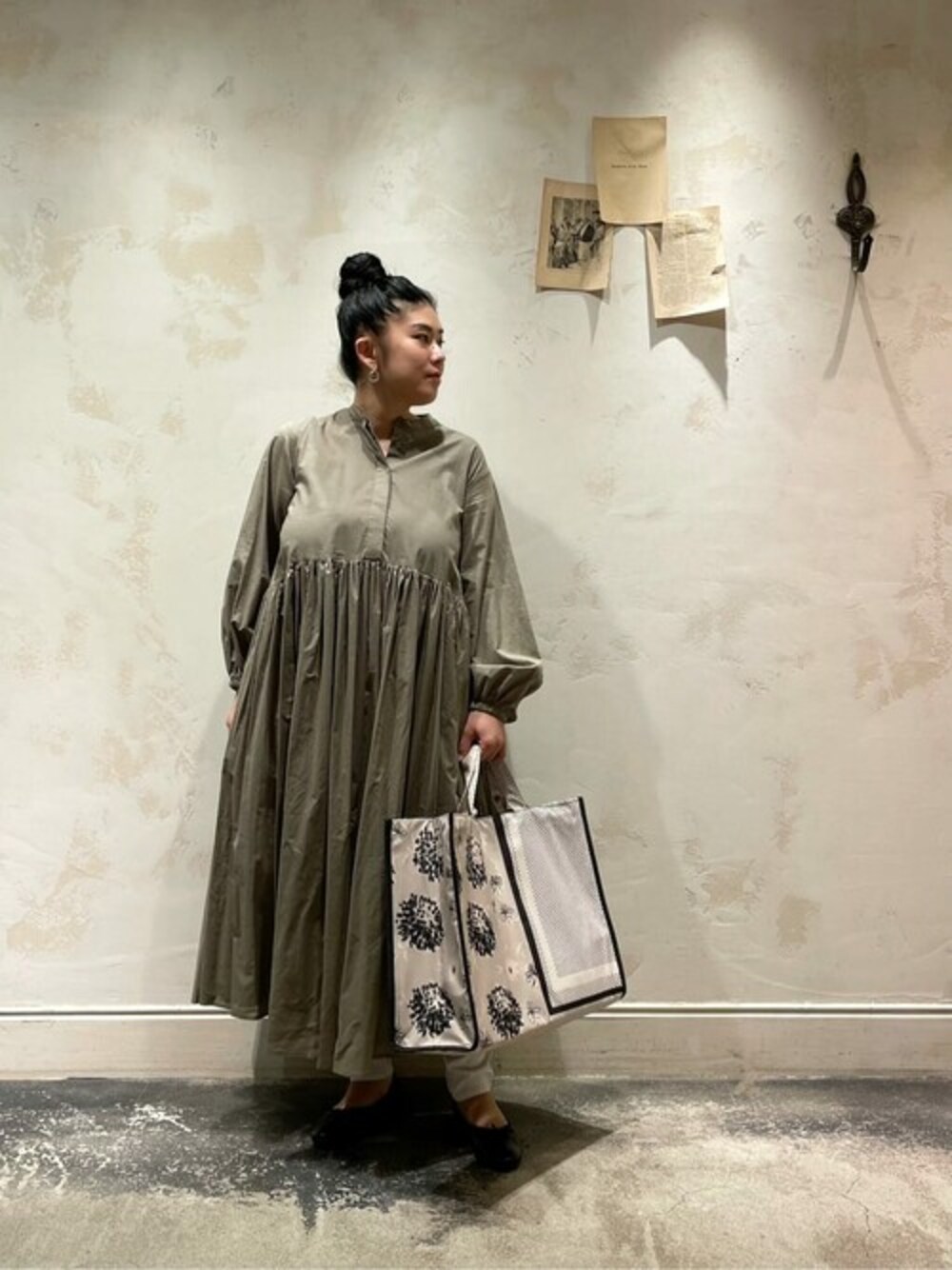 【one-piece】 着用サイズ : 1 胸下にたっぷりとギャザーを寄せたコットン100%のワンピース。 柔らかい素材で落ち感があるので広がりも気になりません。 私は1サイズを着用していて、膝がしっかり隠れてスネ真ん中くらいの長さでした。 洗濯 :手洗い可 伸縮性:なし 透け感:あり 裏地 :なし 光沢感 : なし 【pants】 着用サイズ : 2 ビアズリー定番のパギンスが3サイズ展開になって登場。 私は2サイズを着用していてくるぶしにかかる長さでした。 ワンピースやチュニックと合わせて着るスタイリングがオススメです。 洗濯 :手洗い可 伸縮性:あり 裏地 :なし 【bag】 ビアズリーオリジナルの大きめのショッピングバッグ。 中にアルミを貼っているので保温・保冷効果があります。 お買い物だけでなく、アウトドアや習い事などお荷物が多いときにも使いたいバッグです。