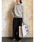 【vest】着用サイズ:F ブークレダンボールプルオーバー。 私もブラックを購入して重宝しています。 Uネックのベストなので柔らかい印象になるのと、トレーナーのような厚手の生地を重ねても、もたつかずに着ていただけます。 サイドのスリットもスッキリ見えるポイントです。 洗濯 :手洗い可 伸縮性:あり 透け感:なし 裏地 :なし 光沢感:なし 【cutsewn】着用サイズ:F 裏起毛のハイネックトレーナー。 比較的スッキリめなシルエットなので、インナーとしても着やすいです。 なんといってもご自宅で洗えるのが嬉しく、着る頻度が高くなりそうです。 洗濯 :手洗い可 伸縮性:あり 透け感:なし 裏地 :なし 【pants】着用サイズ:1 ベストとセットアップで着られるブークレダンボールパンツ。 ぽこぽこしたブークレ素材がコーディネートを単調に見せません。 ボリュームのあるブーツで合わせるのに、今回は1サイズを着用しています。 洗濯 :手洗い可 伸縮性:あり 透け感:なし 裏地 :なし 【bag】 オーガンジーショッピングバッグ。 ミニサイズは貴重品だけ入れてさっと出かける時に。 大サイズはメインとして。 お洋服のお買い物や、ミニバッグの時のサブとして持っていてもおしゃれです。 【shoes】着用サイズ:38 履くだけで雰囲気が出るSOFIE D'HOOREのミドルブーツ。 シンプルなコーディネートのアクセントとして、足元からおしゃれを楽しめます。