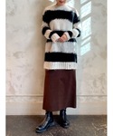 【tops】着用サイズ:F ウール100%の圧縮させた肉厚なニット サイドスリットが入り前後差もあるので たっぷり身幅でも落ち感が出ます 襟元にはVネックなので お顔周りをスッキリ見せてくれます 洗濯 :ドライクリーニング推奨 伸縮性:あり 透け感:なし 裏地 :なし 【bottom】着用サイズ:F フェイクスエードのタイトスカート 深めのスリットが後ろに入っているので タイトスカートでも歩きやすいです ウエスト部分はファスナー仕様となり 裏地も付いているので安心して着れます 150cmのわたしには長めなので ヒールで合わせてます 洗濯 :手洗い可 伸縮性:なし 裏地 :あり