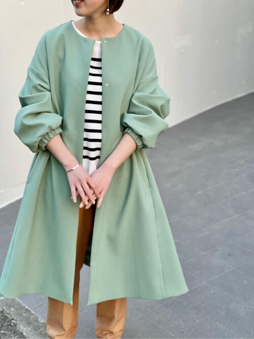 BEARDSLEY(BEARDSLEY)のノーカラーコート「バルーン袖コート」を使ったコーディネート