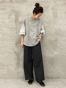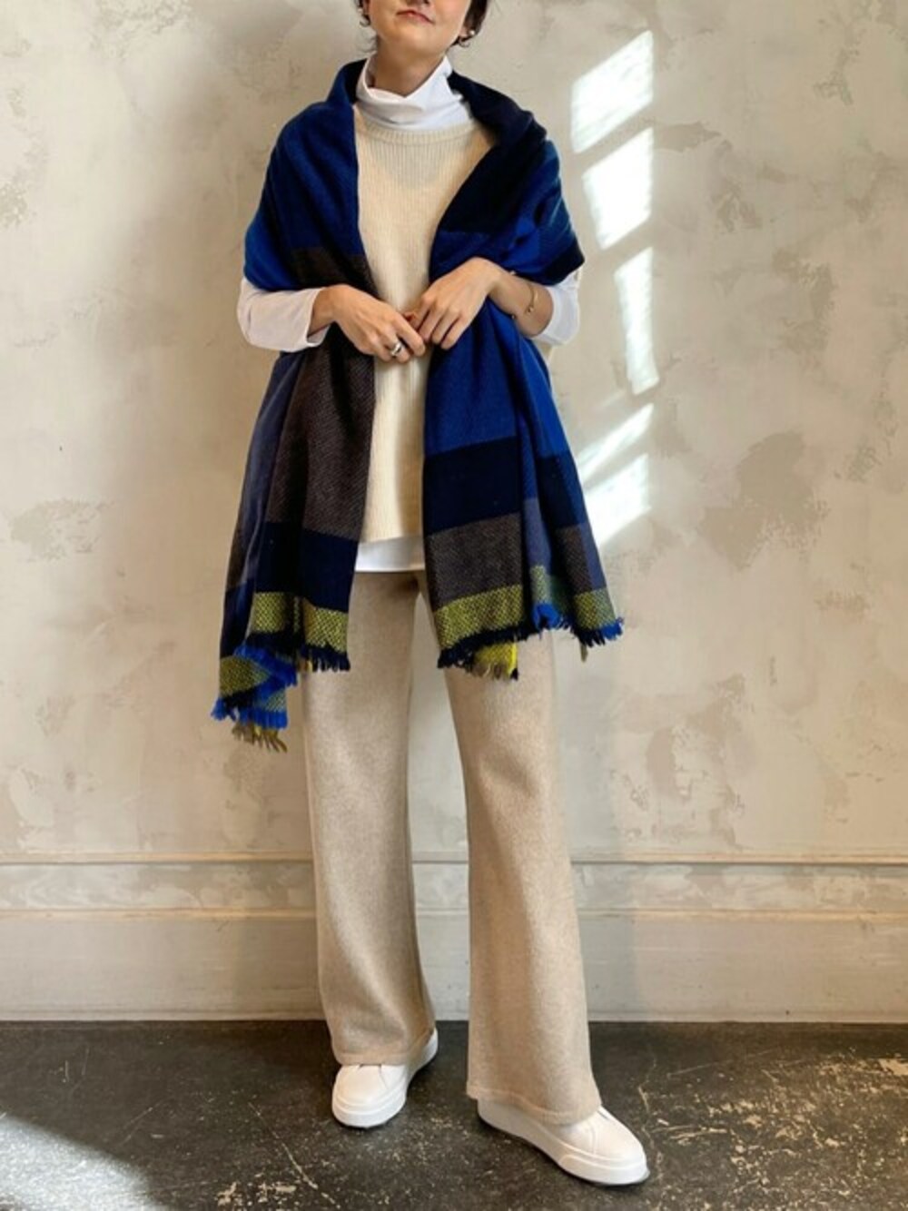 【knit】着用サイズ:F サイドのリボンを結んで着るポンチョニット。 ラクーンウールの軽くて暖かい肌触り。 ハイネックやブラウス、ワンピースなど、色々なものに重ねてコーディネートが楽しめます。 洗濯 :ドライクリーニング 伸縮性:あり 透け感:なし 裏地 :なし 【cutsewn】着用サイズ:F 綿100%のハイネックTシャツ。 まだ肌寒い春先のインナーにも重宝しそうです。 後ろはおしり隠れる着丈ですが長すぎないので、重ね着した時にもトップスとのバランスが取りやすいです。 洗濯 :手洗い可 伸縮性:あり 透け感:ホワイトは多少あり 裏地 :なし 【pants】着用サイズ:1 綿ウールのニットパンツ。 ニットパンツって穿きやすくてついつい買ってしまいます。 白シャツにスニーカーでヘルシーに、パンプスを合わせて女性らしく…など、リラックス感のあるスタイリングが楽しめます。 洗濯 :ドライクリーニング 伸縮性:あり 透け感:なし 裏地 :なし 【stole】 《IMAYIN》ストール・BEZ1021116D0008 ¥18,700(税込) ビアズリーでもバッグが人気の《IMAYIN/イマイン》から、柄のストールがたくさん入荷しています。 こちらのかなり大判なブルーのチェックはスタッフ人気も高く、羽織ってベルトでとめたり、スヌードのようにぐるっと巻いたりと色々楽しめそうです。 洗濯 :ドライクリーニング 【shoes】 着用サイズ:38 《MAIMAI》シューズ・BEZ1021113D0001 ¥31,900(税込) イタリアブランドの《MAI MAI/マイマイ》からスリッポンとハイカットスニーカーが入荷しています。 メゾンブランドのシューズを手掛けるファクトリーが作る、洗練されたデザインはもちろん、その軽い履き心地に驚きます。 足幅が広いめな方でも安心して履けるなと思いました。 スリッポンタイプは約4cm、 ハイカットタイプは約3cmほどのソールの高さがあるので、スタイルアップ効果があります。