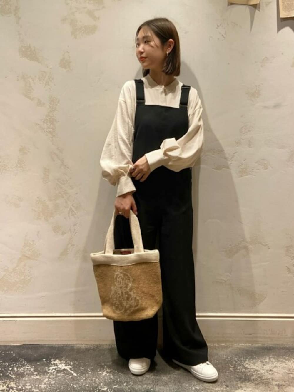 【blouse】着用サイズ:F サラッとした着心地の春らしいブラウス。 うっすらとしたストライプ柄なので爽やかなイメージで着ていただけます。 袖はたぷっとしたボリューム感のあるふんわりシルエット。 ノーカラーなのですっきりとした印象に◎ 洗濯 :ドライクリーニング 伸縮性:なし 透け感:多少あり 裏地 :なし 色落ち:なし 【salopette】着用サイズ:F 柔らかな生地でとても着やすいサロペット。 アジャスターで長さ調節もできるので、色んな身長の方に着ていただけます。 肩のベルトも太めなので、肩が痛なる心配がないです◎ 洗濯 :手洗い可 伸縮性:なし 透け感:なし 裏地 :なし 光沢感:なし 【bag】 ANNE BECKER 【shoes】着用サイズ:37 MAIMAI