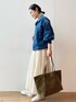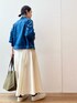 【tops】着用サイズ:F 人気のアワユキシリーズのカットソー。 肌触りがしっとりと柔らかく、敏感肌の方にもおすすめです。スタッフにも人気で色違いで揃えてるスタッフも多いアイテムです。 洗濯 :手洗い可 伸縮性:あり 透け感:なし 光沢感:なし 【outer】着用サイズ:F ハードにならないデニムジャケット。 生地も柔らかく着心地がとても軽いです。 袖口はリブになっているので気楽に着やすいデザインになっています。 洗濯 :手洗い可 伸縮性:なし 透け感:なし 裏地 :なし 【bottom】着用サイズ:F スッキリと綺麗なラインが特徴的なフレアスカート。コットン素材で着心地も軽く、同色での切り替えがコーディネートにアクセントを加えてくれます。 洗濯 :手洗い可 伸縮性:なし 透け感:なし 裏地 :あり 【shoes】着用サイズ:39size(24.5~25cm) レザーのスニーカーはカジュアルでも綺麗めなスタイルにしたい方におすすめです。 クッションもしっかりとあるので履き心地も抜群です。 【bag】 ヴィンテージ素材を使用したYVESANDRIEUXのバッグは使い込む程に雰囲気が出てくるので長く愛用したいバッグです。