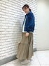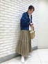 【jacket】着用サイズ:F パフスリーブが女性らしいデニムジャケット。 袖口がリブになっているのでまくりやすく、ボリューム感も気にならずすっきりとした印象に。 腰にかかる程の程よい着丈ですのでボリューム感のあるボトムスとも好相性です。 伸縮性:多少あり 透け感:なし 裏地 :なし 光沢感:なし 【skirt】着用サイズ:F テントのような風合いの生地を使用したアウトドアテイストのスカート。 ティアードの切り替え部分にテープを使用しているのもポイントです。 164cmで足首にかからないくらいの着丈となります。 洗濯 :ドライクリーニング 伸縮性:なし 透け感:なし 裏地 :あり 光沢感:なし 【shoes】着用サイズ:38(普段24.5) オールホワイトでシンプルなレザースニーカー。 フロントが紐ではなくゴムなので着脱がとても楽です。 MAIMAI/マイマイ 【bag】 ANNE BECKERのトートバッグ。 手編みで編まれたジュートバッグは季節問わず使える素材感。 しっかりマチもあるので収納力もばっちりです。 ANNE BECKER/アンヌベッカー