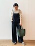 【tops】着用サイズ:F 綿麻素材の柔らかいニット。 ざっくりとしたローゲージでスッキリとしたシルエットが綺麗な一着。 様々なコーディネートで活躍しそうです。 洗濯 :ドライクリーニング 伸縮性:あり 透け感:あり 光沢感:なし 【bottom】着用サイズ:F スッキリとしたラインのシルエットに、華奢な肩紐が大人でも着やすいデザイン。 アジャスターで肩紐の長さも調節可能なので身長に合わせて着用していただけます。 洗濯 :手洗い可 伸縮性:多少有り 透け感:なし 裏地 :なし 【shoes】着用サイズ:38size(24.5~25cm) 柔らかい履き心地のファビオのフラットシューズ。ギラギラ感のないシルバーなのでコーディネートにも合わせやすいです。 【bag】 人気のDoragonのバッグが、久しぶりに入荷致しました。カラーも深みのあるグリーンがとても可愛いです。丈夫ですし、私も長く愛用しているブランドのバッグのうちの一つです。